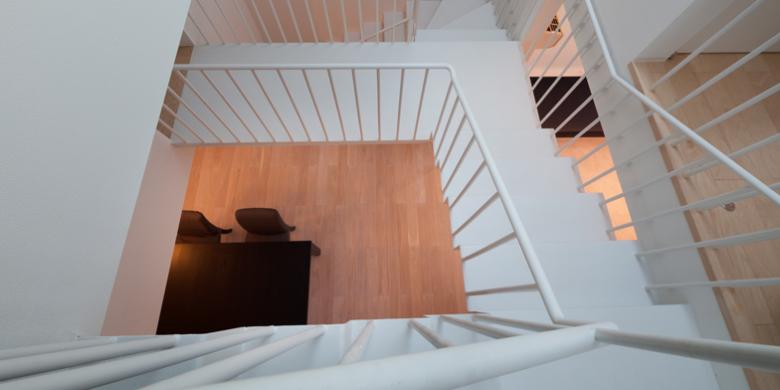 Melalui foto-foto yang diambil oleh Fernando Gomulya, tampak bahwa rumah yang diselimuti dengan warna putih ini memiliki pembagian ruang yang sederhana, tetapi tidak kehilangan kesan sophisticated-nya. Contohnya, kamar utama yang berada di lantai teratas. Kamar tersebut memiliki akses langsung menuju balkon pribadi. Ruang ini juga didesain agar pemiliknya bisa melihat ruang bermain anak.